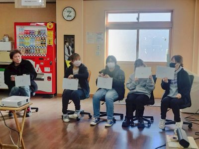岐阜工場は人数の関係で8名を1チームにしてチーム分けは平均年齢になるように組み男女構成比も同じようになるようにしました。