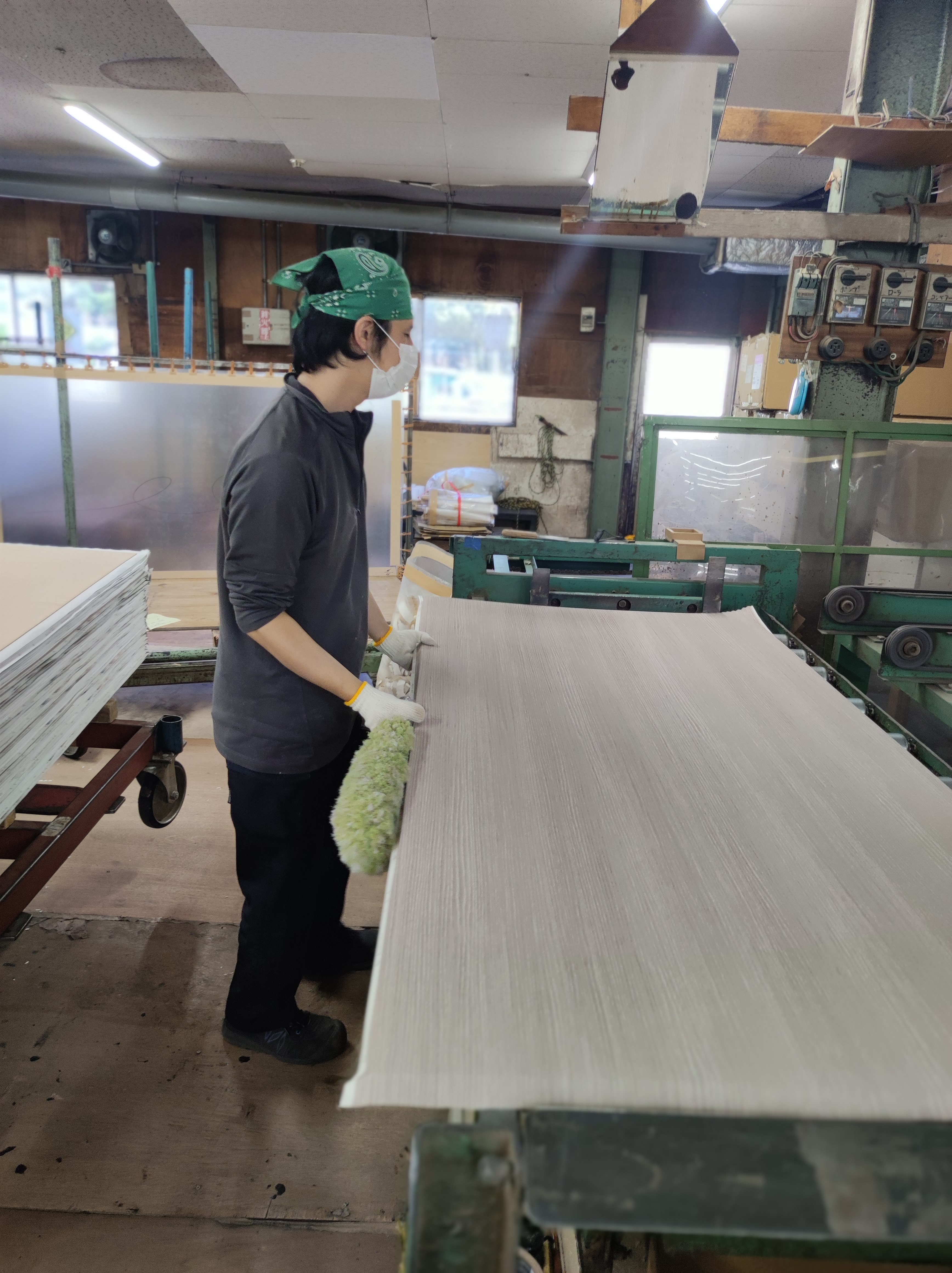 岐阜工場でのポリエステル化粧合板のお仕事内容をご紹介致します。働く際のイメージとしてご参考にいただければと思います。